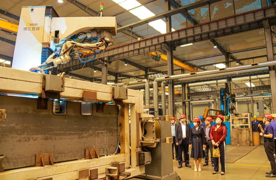培訓學員抵達公司后,付總代表公司對“新時代江蘇民營企業家培養計劃”第五次集中培訓學員們的到來表示熱烈地歡迎,并邀請大家觀看我司宣傳片,對公司所屬行業及產品進行了大致介紹。隨后,學員們深入我公司東環廠區車間現場進行觀摩,付總向大家詳細介紹公司配重焊接機器人生產線、水性漆自動噴涂生產線的生產工藝、生產規模、產品銷售等情況。