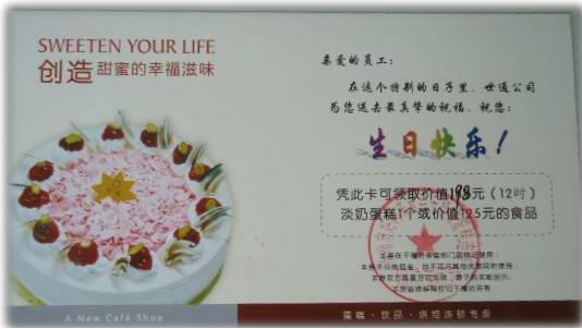 生日蛋糕,來自“家人”的祝福:公司管理部給公司每位過生日的員工發(fā)放一份生日蛋糕,充分體現(xiàn)了公司“以人為本”的經(jīng)營理念。